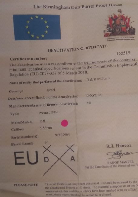 A deactivated (EU Spec) Micro Galil assault rifle. This lot will be available to collect in person 48 hours after the end of the sale. Please contact the office admin@humbertellis.com for collection appointments / postage quotes / courier information.