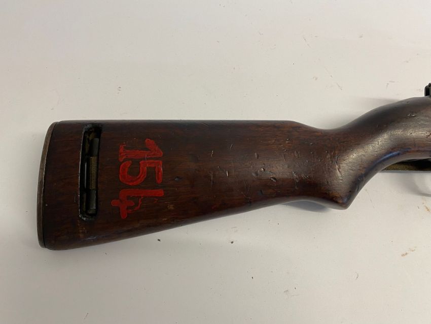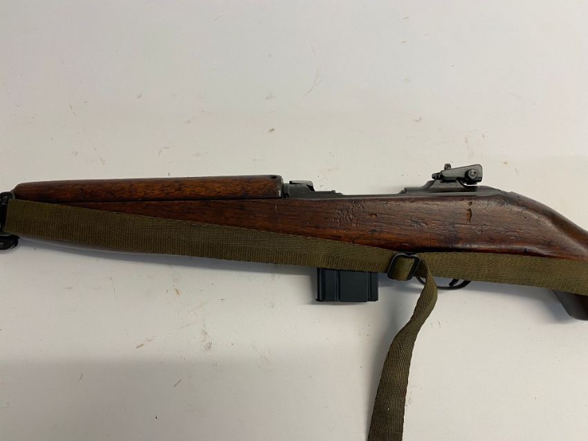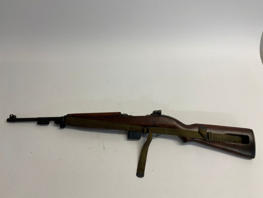 A deactivated (EU Spec) M1 carbine, Saginaw production, with sling, moving bolt under spring pressure. This lot will be available to collect in person 48 hours after the end of the sale. Please contact the office admin@humbertellis.com for collection appointments / postage quotes / courier information.