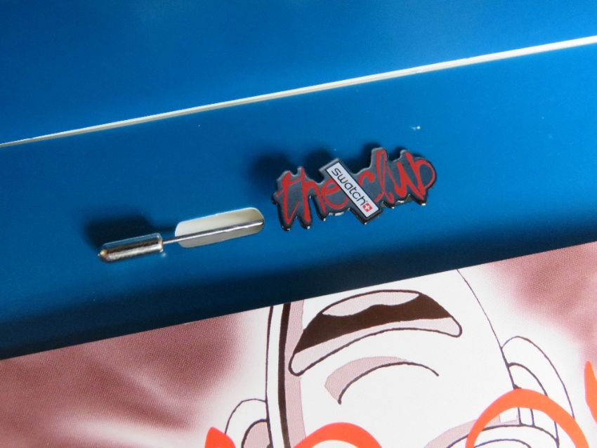 A 1996 Swatch Club Looka watch with model, pin and certificate, in original packaging, new battery within box. Disclaimer: Please note watches are sold as untested and without guarantee.