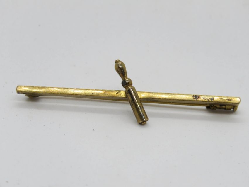 A yellow metal bar brooch, unknown Arabic? mark upon, 3.9g.