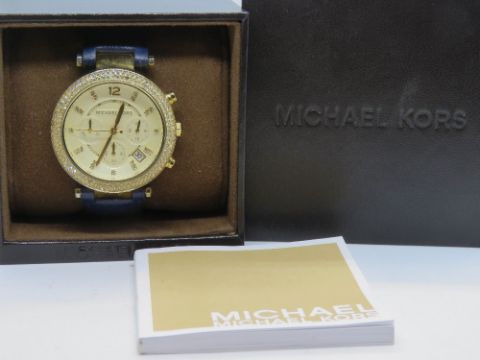 A Michael Kors ladies Parker Blue watch MK2280 with original box and manual.