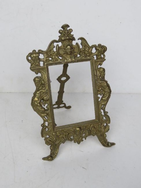 A brass easel back picture frame standing 25.5cm high, no glass.