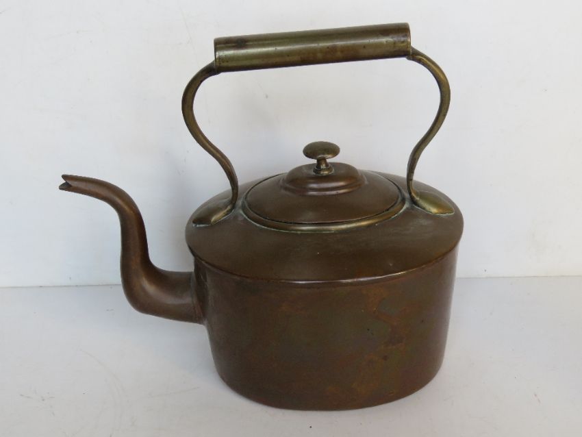 A copper kettle, approx 29cm to spout.