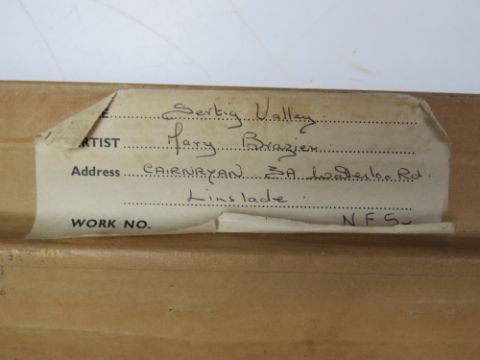 Oil on canvas Sertig Valley by Mary Brazier. Sight size 55 x 44cm in mid-century frame.
