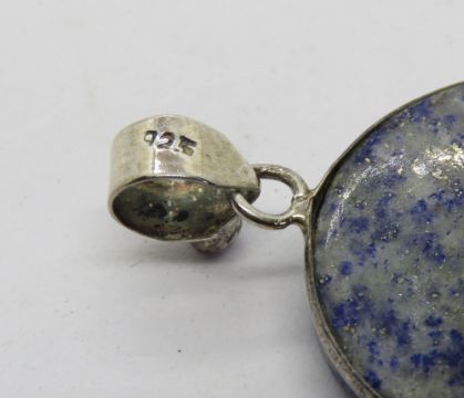 A Lapis Lazuli pendant, stamped 925, approx 5cm in length.