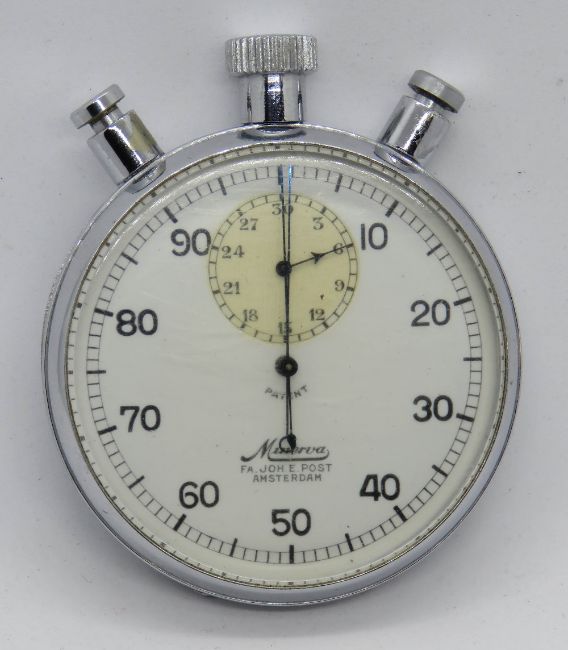 A Minerva chrome plated open face keyless wound stop watch.