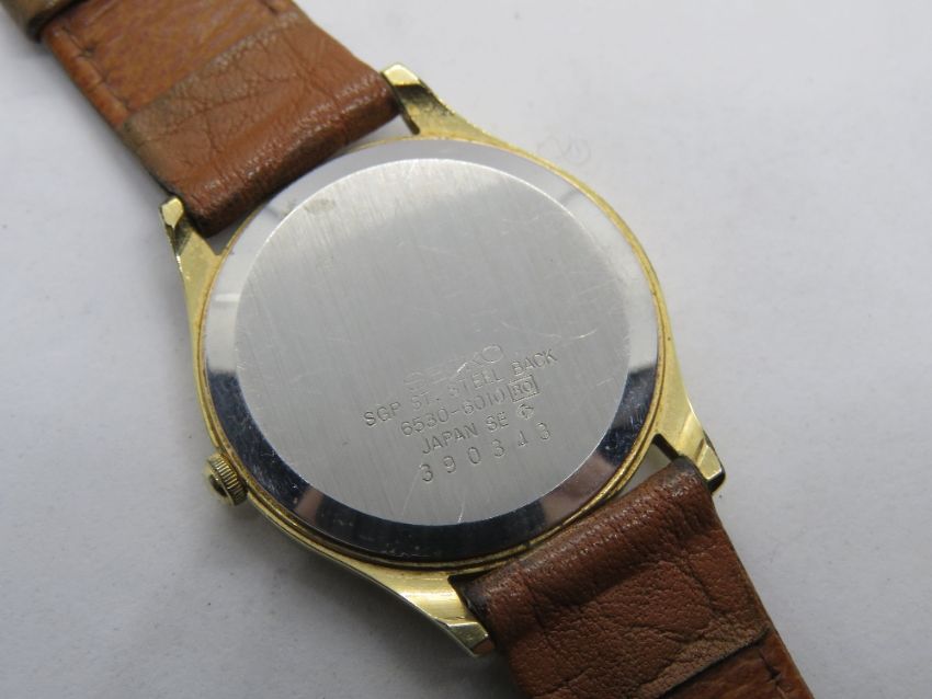 A Seiko wristwatch 6530-6010 with stainless steel back.
