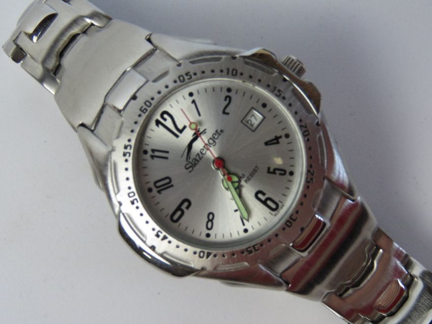A stainless steel Slazenger wrist watch with original watch having luminous hands and date aperture, SLZ12G.