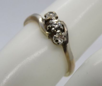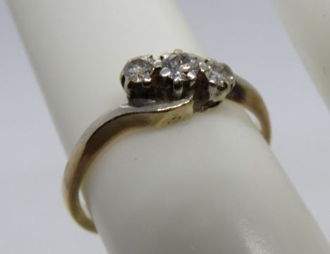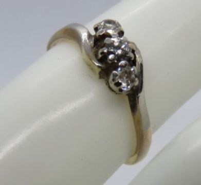 A three stone diamond ring, hallmarks worn, size J-K, 2.1g.