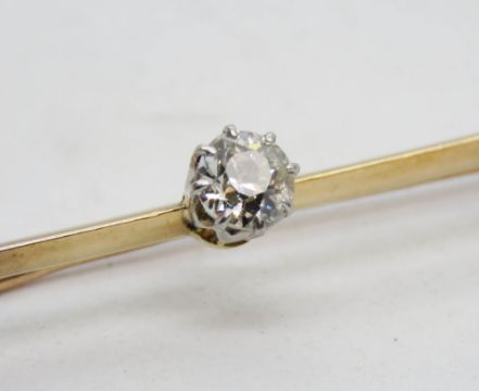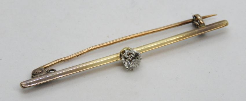 A diamond brooch, approx 0.3ct round cut brilliant solitaire diamond, no apparent hallmark, total weight 3g.