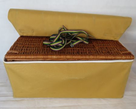 A wicker picnic hamper with case specifically designed to fit to a Rolls-Royce 25/30.
