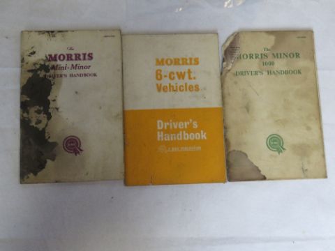six assorted Morris owners handbooks including Minor and 6-cwt vehicles.