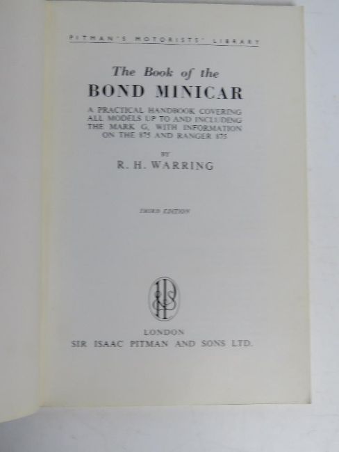 The Book of the Bond minicar by R.H. Warring, Pitman's Motorists Library, third edition 1968.
