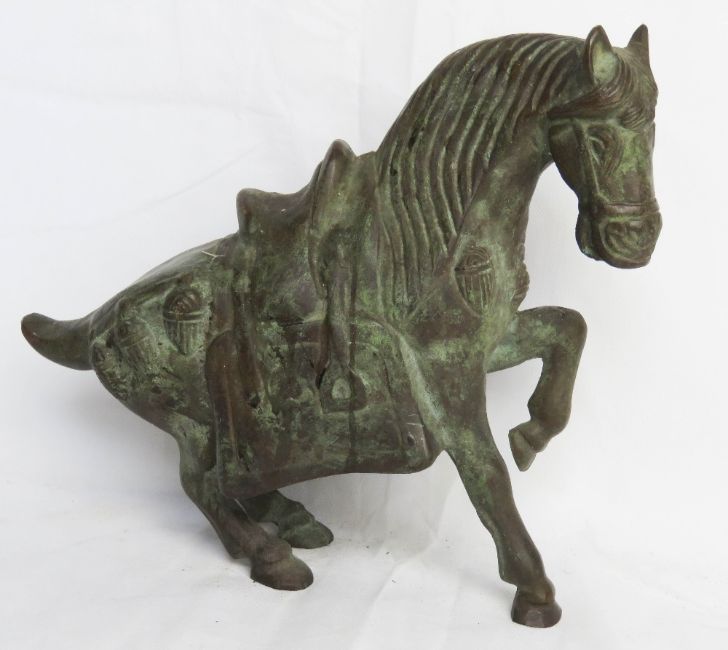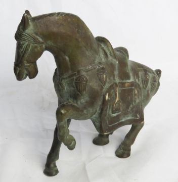 A Chinese bronze standing horse statue in the Ming dynasty style, approx 27cm high.