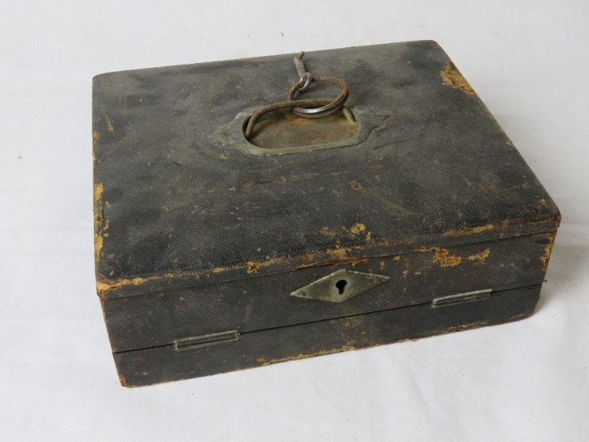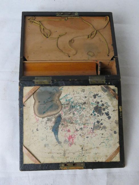 A delightful leather covered travelling writing slope, opening to reveal stationary compartments within.