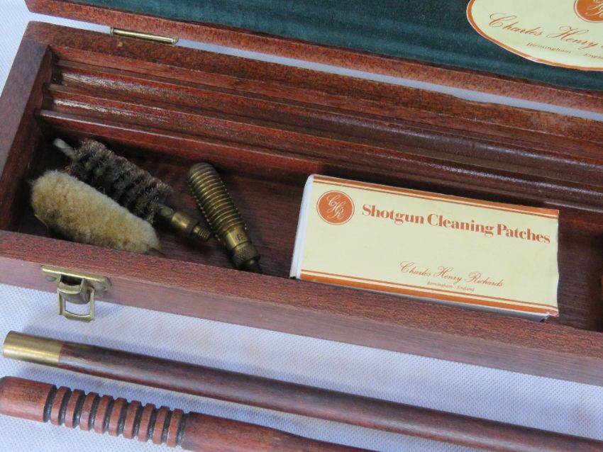 A Charles Henry Richards gun cleaning case and set, to include barrel cleaners and sundries.