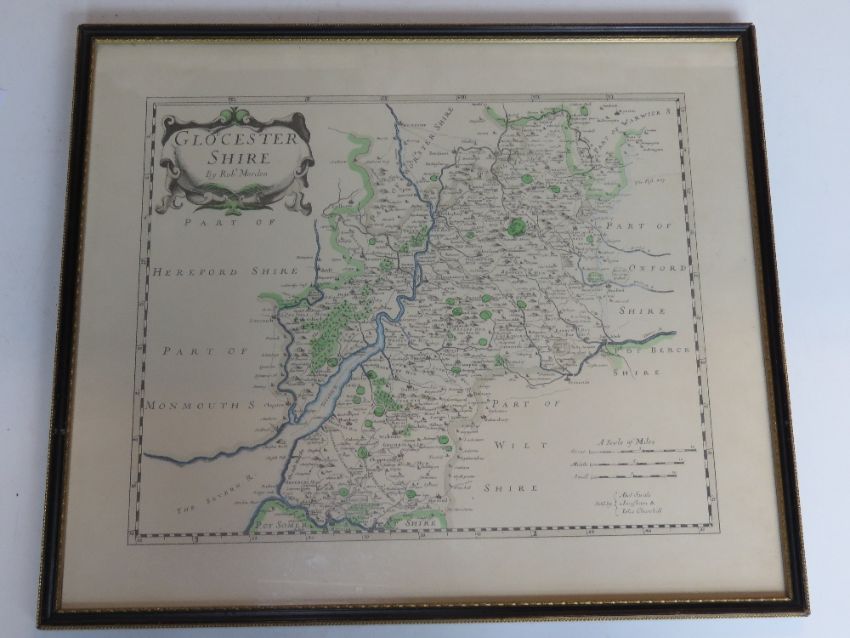 Print; Map of Gloucestershire by Robert Morden, sight size approx 36.5 x 29.5cm in Hogarth style frame, 46.5 x 40cm overall.