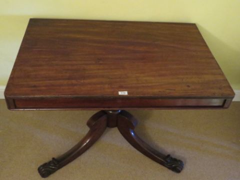 A fine mahogany square shaped breakfast table raised over triform base, 104 x 70 x 74cm.