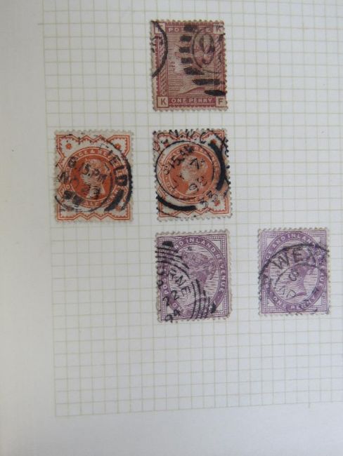 Stamps; an album - one page filled the rest are blank. Victorian stamps including penny red.