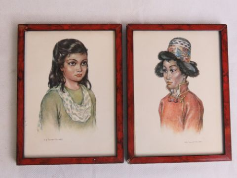 Lily Eversdijk-Smulders (1903-1994), portrait painter and lawyer, four portrait prints in matching frames.