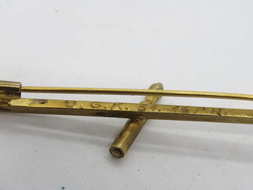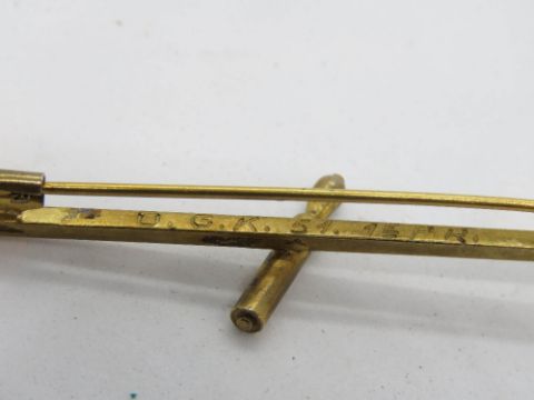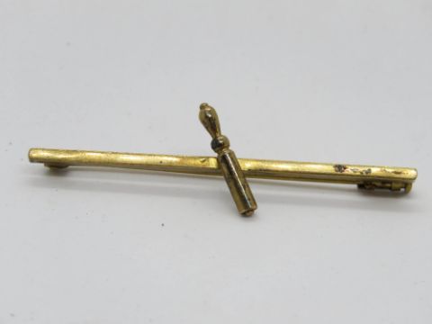 A yellow metal bar brooch, unknown Arabic? mark upon, 3.9g.