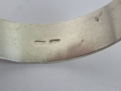 A hallmarked silver bangle having carved foliate pattern upon, HM for Birmingham with maker's mark C H Co, 25.4g.