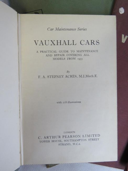 A quantity of Vauxhall handbooks and Pearson's car servicing books.