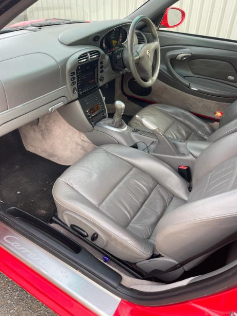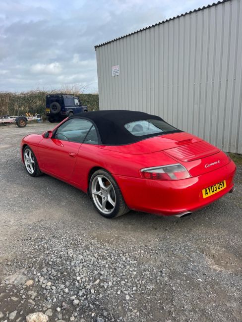 A 2003 Porsche 911 Carrera 4 in Guards Red Brand new engine & upgrades fitted at 25000 miles by Hatfield Porsche. Full main dealer service history with 9 service books stamps. Stainless steel exhaust with two remote fobs. Roof only two years old. Same owner 17 years. Showing 64000 miles Make: Porsche Model: 911 Carrera 4 (996) Registration: AY03 OSW Year: 2003 MOT: 3 Sept 2024 V5: Present Former Keepers: 5 Keys: TBC Body Type: Convertible Engine Size: 3600CC Doors: 2 Seats: 4 Exterior Colour: Red Interior Colour: Fuel Type: Petrol Transmission: Manual Engine No: 66317939 Chassis No: WP0ZZZ99Z3S642879 This vehicle is located near West Alvington, Devon TQ7 from where it will need to be collected. Videos and Motorscan Report available on request. Viewing is by appointment, please contact the office to arrange. Some vehicles on offer will need some light recommissioning so please assume that your new purchase will need trailering away. We can provide details of a trusted and fully insured logistics partner.