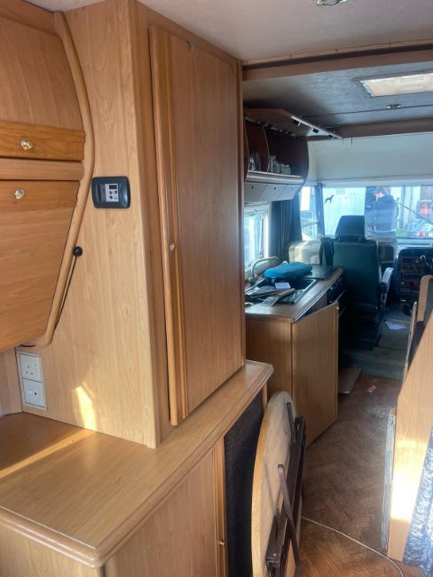 Alloys, Automatic satellite system fitted uk and Europe, Hot and cold water, Blown air central heating ,2 large leisure batteries, Onboard fresh and grey water tanks, Hook up cable, 13 led lights, Full oven, Fridge Leather front captains chairs and desirable large rear U shaped lounge that makes a large bed, one other small double.