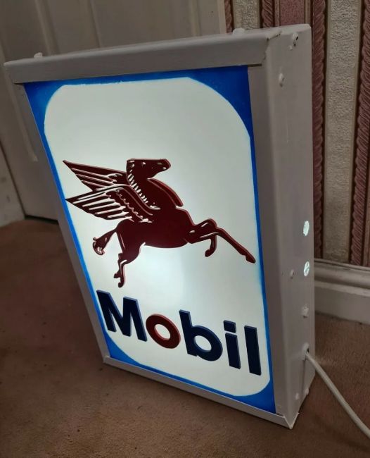 A contemporary illuminated Mobile Pegasus box sign, 43 x 32 x 9cm.