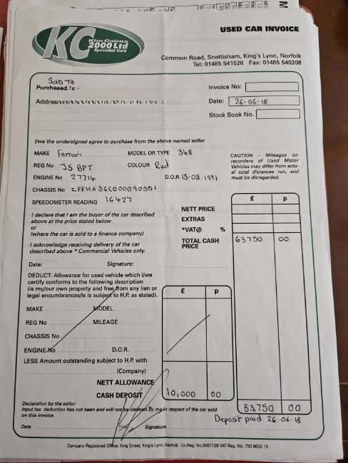 1991 Ferrari 348 TS This mid-engined V8 powered two-seat sports car replaced the 328 in 1989 and was the final car to be developed under the direction of Enzo Ferrari. With a production run of just 4228 of the Targa-topped TS range, there is something truly 'classic' about the V8 engine and 5-speed manual gearbox combination, allowing for the quintessential driver experience. This example, boasting just 16,701 miles and sporting the ubiquitous Rosso red livery, represents the last of the true Ferraris as envisaged and designed by Enzo himself sensibly guided at £55,000 - 75,000 Make: Ferrari Model: 348 TS Registration: J5 BPT Year: 1991 Showing mileage of 16,701 MOT: Expired 21 Aug 2020 V5: Present Former Keepers: 5 Engine Size: 3405CC Doors: 2 Seats: 2 Exterior Colour: Red Interior Colour: Cream Fuel Type: Petrol Transmission: Manual Engine No: 27714 Chassis No: VIN ends 0551 This vehicle is located near Burton, Lincolnshire LN1 from where it will need to be collected. Videos and Motorscan Report available on request. Viewing is by appointment, please contact the office to arrange. Some vehicles on offer will need some light recommissioning so please assume that your new purchase will need trailering away. We can provide details of a trusted and fully insured logistics partner.