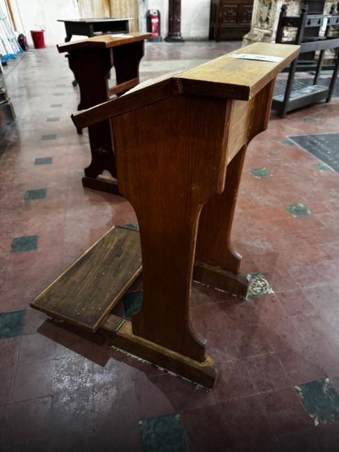 A 20th century oak hinged prie-dieu or prayer desk of plain form throughout, 20" (51cm) wide, 25" (64cm) deep, 32.5" (82cm) high.