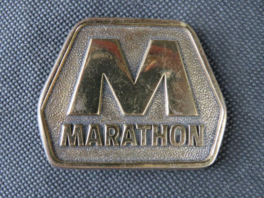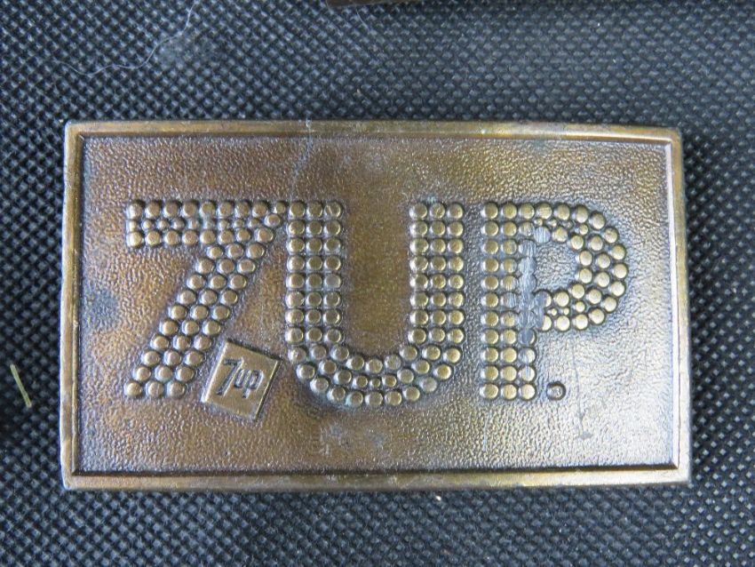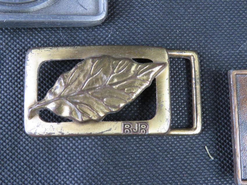 A quantity of assorted Americana belt buckles including 7 Up, Marathon, R J Reynolds Tobacco.
