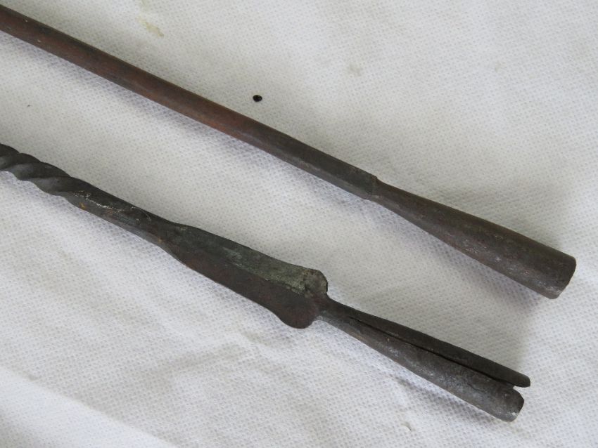 Two handmade spear tops.