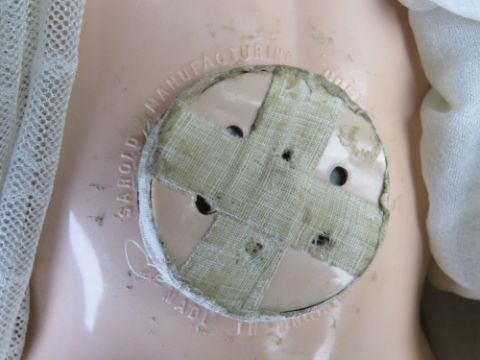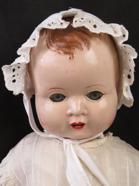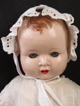 A 1950s Sarold doll, hard plastic, jointed, moulded hair and voice box (not functioning).