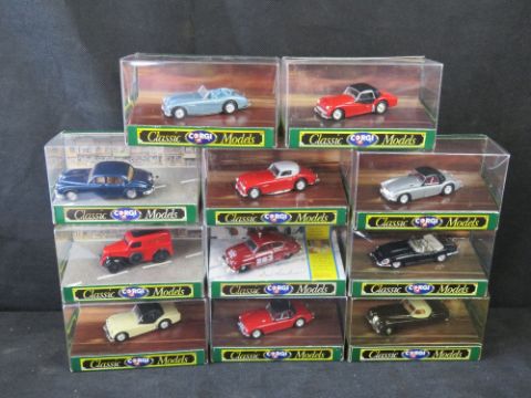 Scale model vehicles, Corgi Classic Models, 11 items.