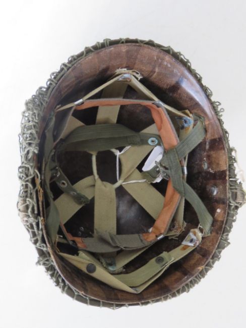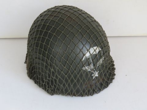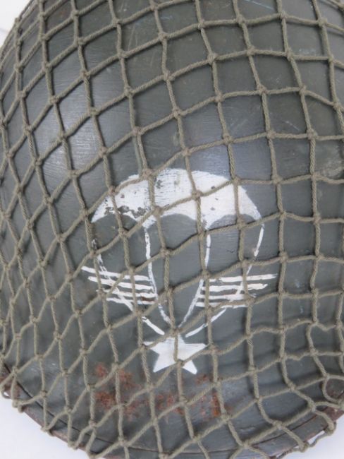 A French M1 Para helmet with liner and chin strap.