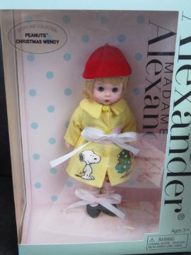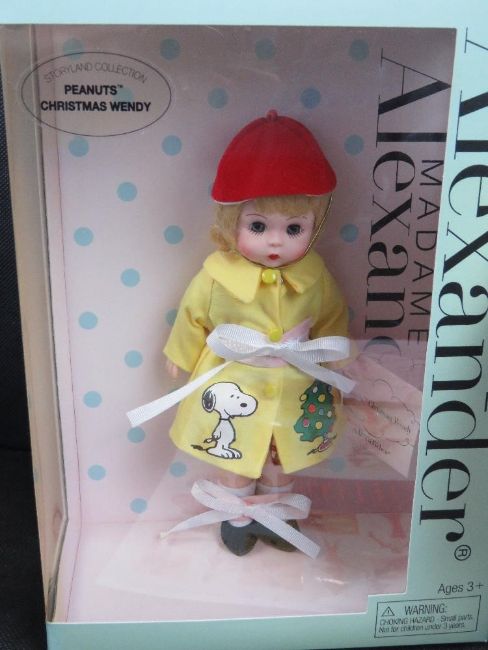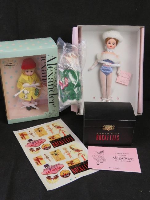 Two Madame Alexander dolls in boxes; Radio City Rockette Trunk Set and Peanuts Christmas Wendy