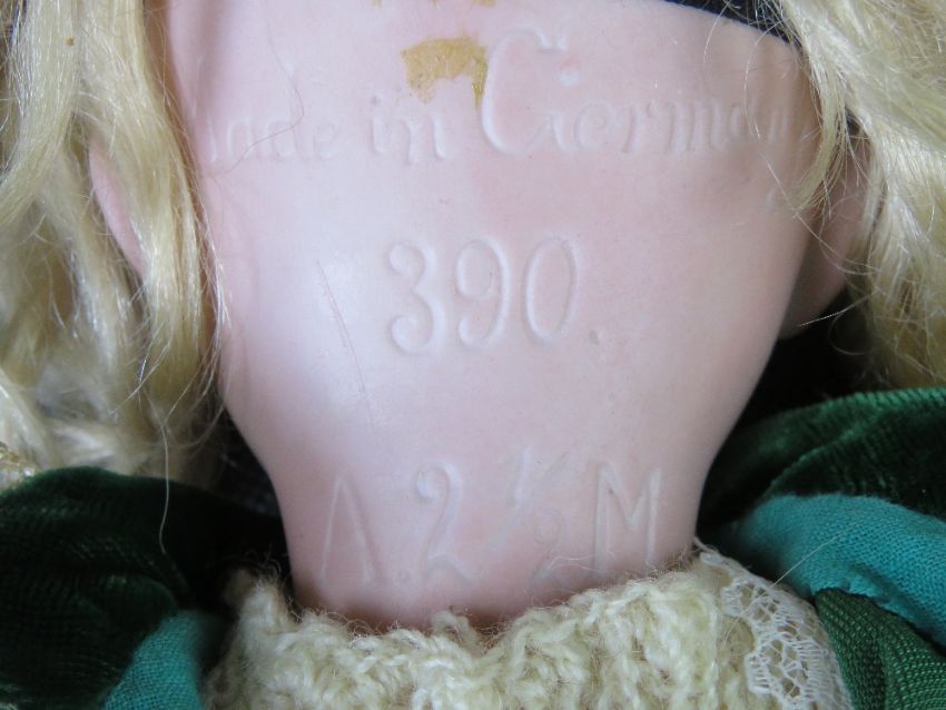 An Armand Marseilles bisque head doll, A.2 1/2 .M, 390, having sleepy eyes, open mouth with teeth and rosy cheeks.