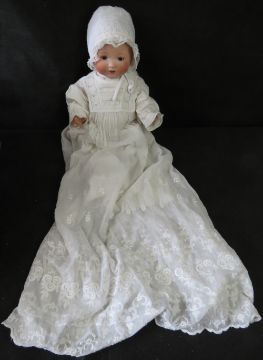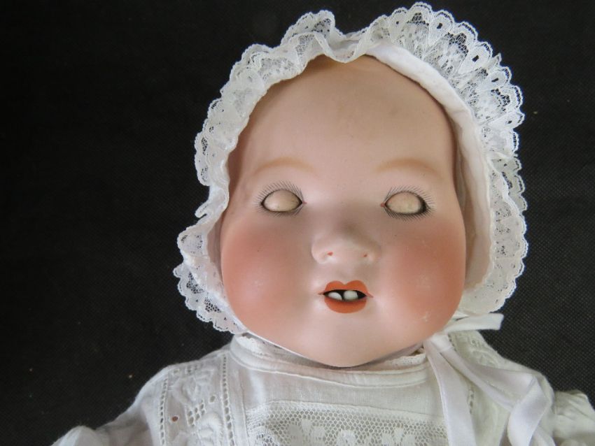 An Armand Marseilles bisque head baby doll, 351 / 1K, having sleepy eyes, open mouth with teeth and rosy cheeks.
