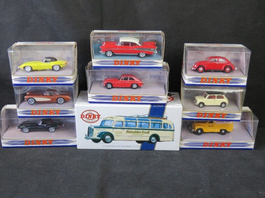 Scale model vehicles, The Dinky Collection by Matchbox, nine items.
