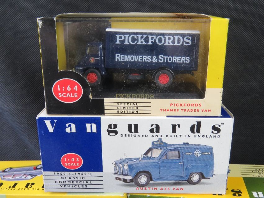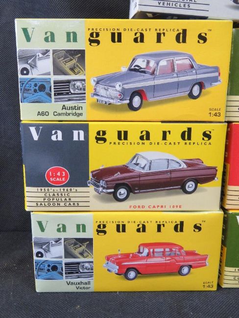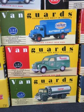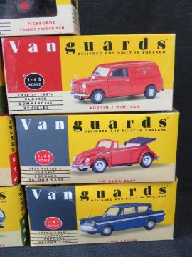 Scale model vehicles, Vanguards cars and commercial vehicles, 11 items.
