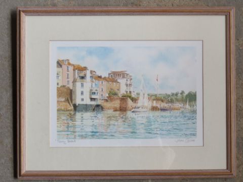 John Gillo signed watercolour print 'Ferry Boat', framed.