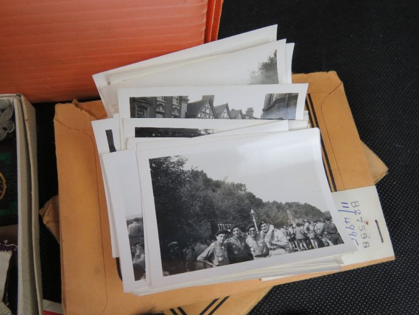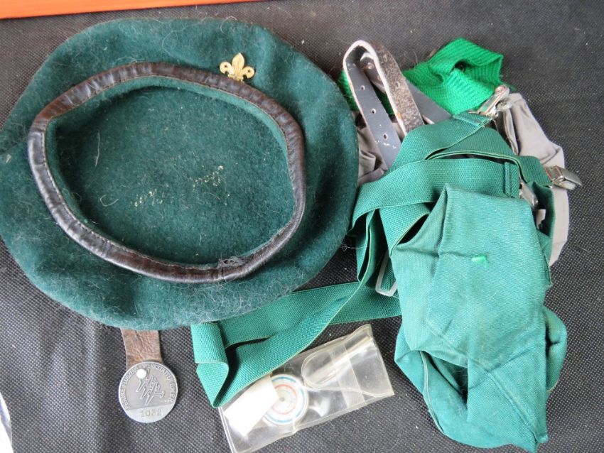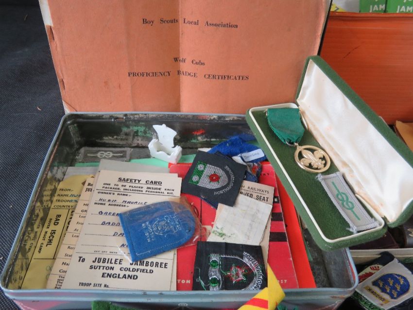 A quantity of Scouts ephemera including badges, medals, beret, belts, original poster, 1950's pamphlets, jamboree programmes and tickets.