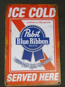 A contemporary Pabst Blue Ribbon beer advertising sign.