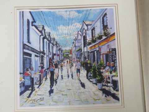 A pair of modern prints in silver frames.