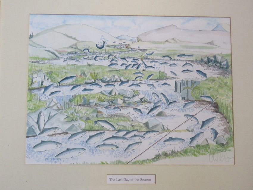 Signed print; The Last Day of the Season, signed by the artist Charles Dunn, framed and mounted.