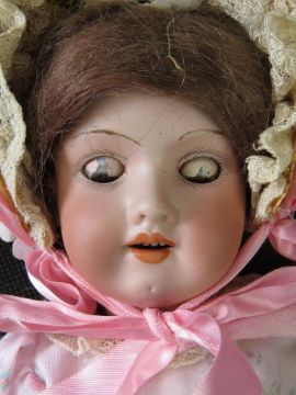An Armand Marseilles bisque head doll, A.4/0.M, 390, having sleepy eyes, open mouth with teeth and rosy cheeks.