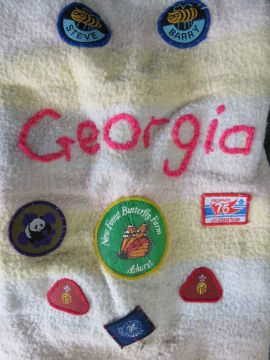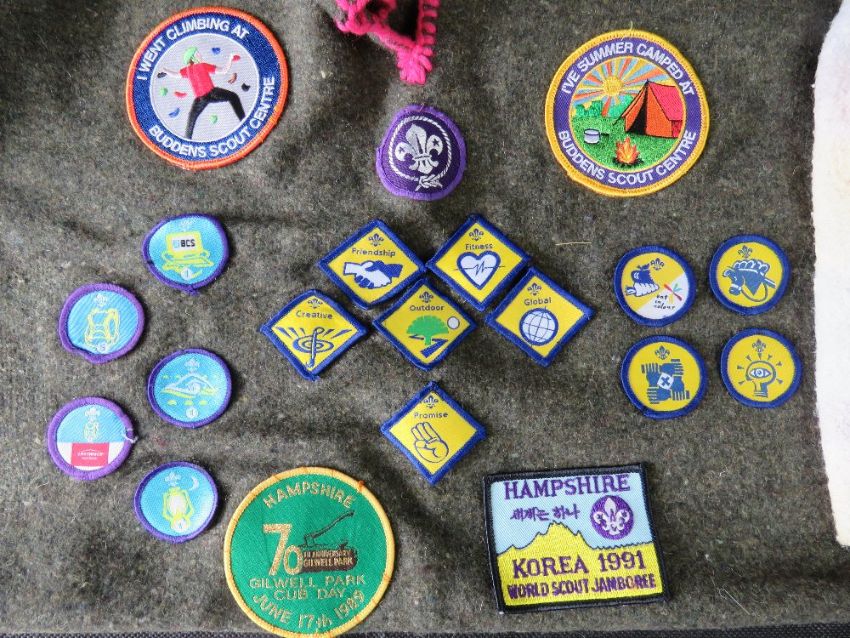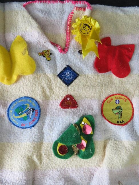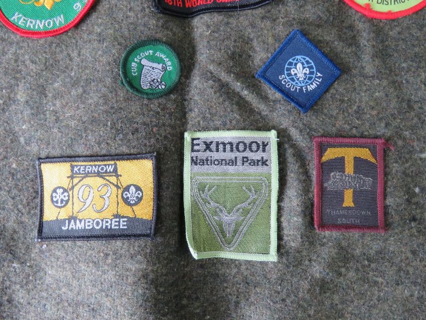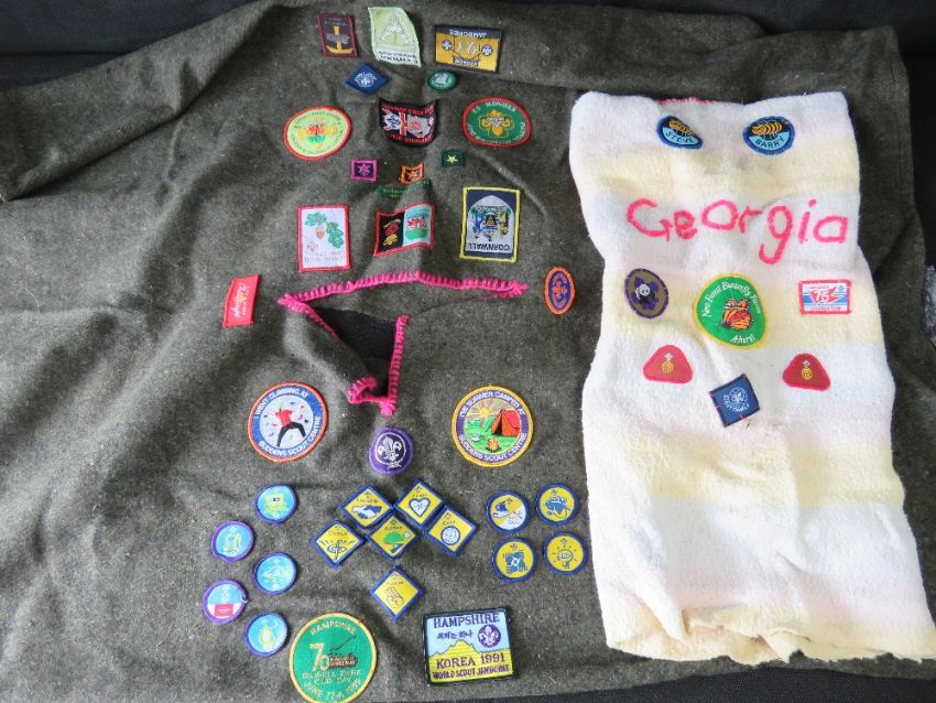 Two Scouts ponchos having various badges upon.
