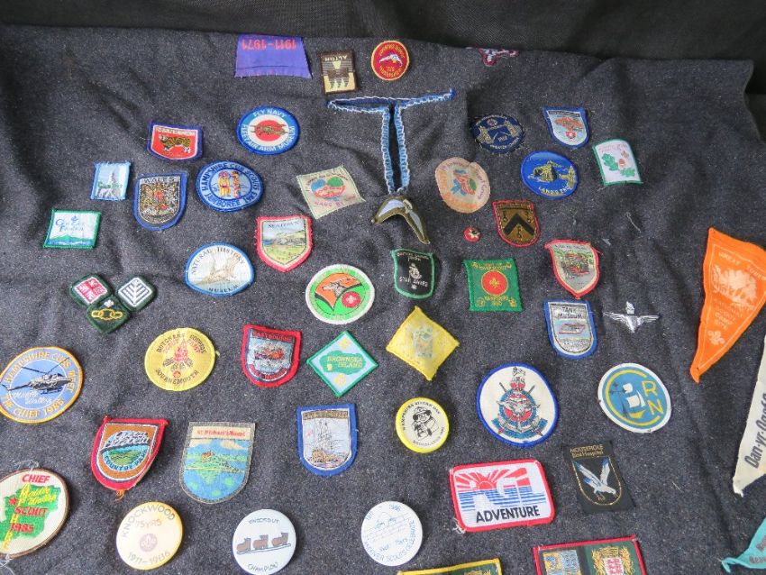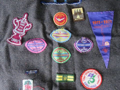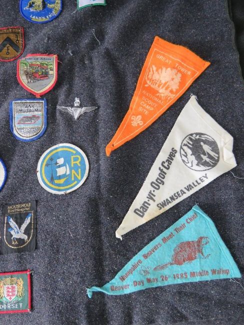 A Scouts poncho having various badges upon.